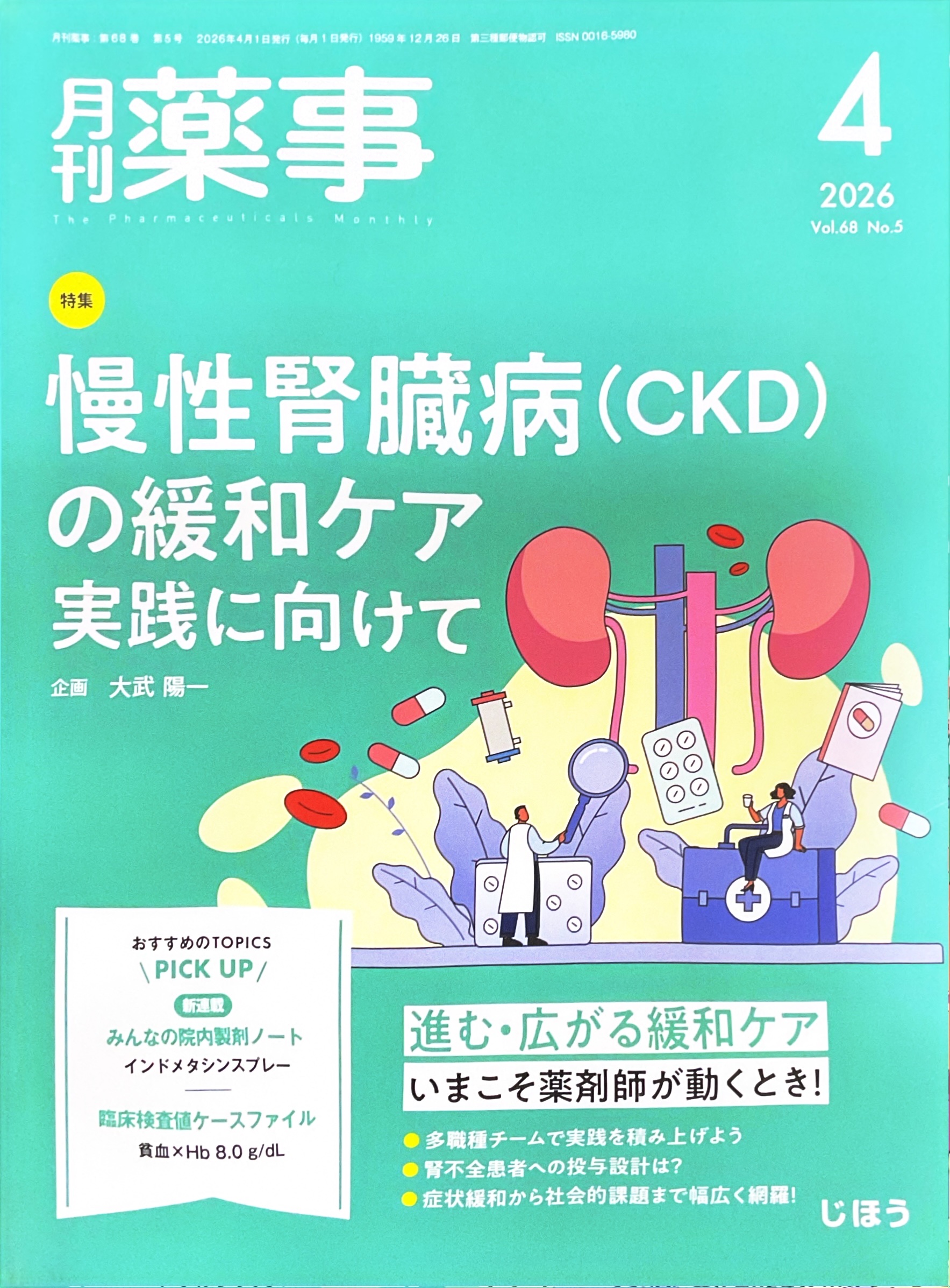 この度、当院院長の執筆記事が、株式会社じほう「月刊 薬事 2026年4月号(Vol.68 No.5)【特集】慢性腎臓病(CKD)の緩和ケア実践に向けて」に掲載されましたのでお知らせいたします。