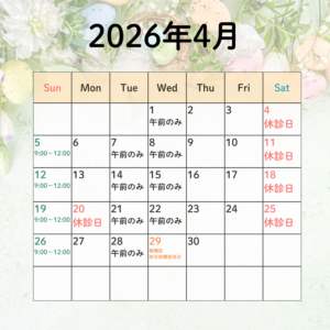 4月20日(月)は関東信越厚生局による新規個別指導のため休診となります。(2026/3/23 更新)