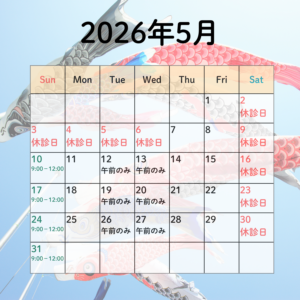 ゴールデンウィーク中の5月3日(日)は祝日にあたるため休診とさせていただきます。